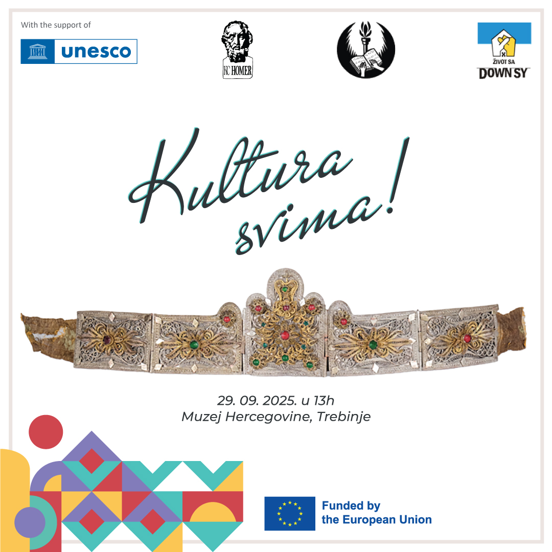 Sarajevo, 17. oktobar 2025. – Sinoć je u Umjetničkoj galeriji Bosne i Hercegovine svečano otvorena izložba pod nazivom „Kultura svima!“, nastala u okviru projekta „Muzej za sve – Put ka pristupačnijim muzejima u Crnoj Gori i Bosni i Hercegovini“. Izložba, koju su zajednički realizovali Udruženje “Život sa Down sindromom Federacije Bosne i Hercegovine” i Umjetnička [...]