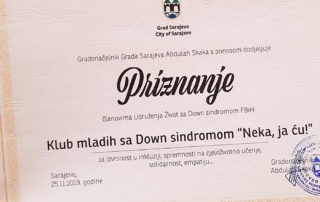 Proslavaljali smo Dan državnosti Bosne i Hercegovine slaveći inkluziju! Gradonačelnik Sarajeva, Abdulah Skaka, je u sklopu manifestacije povodom Dana državnosti dodijelio Klubu mladih našeg udruženja priznanje i zlatni novčić za izvrsnost u borbi za inkluziju, spremnost na cjeloživotno učenje, solidarnost i empatiju. Udruženje Život sa Down sindromom FBiH je uspostavilo Klub mladih pod nazivom "Neka [...]
