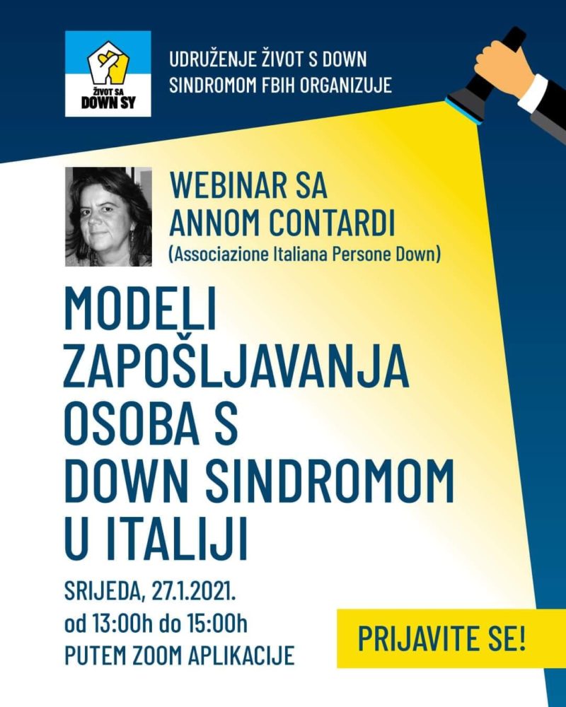 Tema webinara je „Modeli zapošljavanja osoba s Down sindromom u Italiji“.
