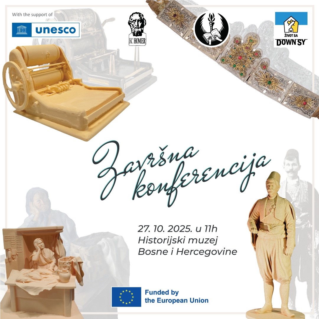 27.10.2025.godine – U Historijskom muzeju Bosne i Hercegovine održana je konferencija „Kultura svima!“, koja je okupila predstavnike institucija, međunarodnih organizacija, kulturnih ustanova i civilnog društva. Događaj su zajednički organizovali Udruženje Život sa Down sindromom Federacije BiH i Historijski muzej BiH, u okviru projekta „Muzej za sve – Put ka pristupačnijim muzejima u Crnoj Gori i Bosni i Hercegovini“, podržanog od strane UNESCO-a i Evropske unije kroz program Kultura i kreativnost za Zapadni Balkan (CC4WBs).